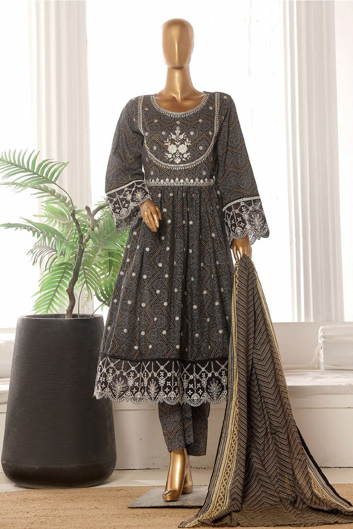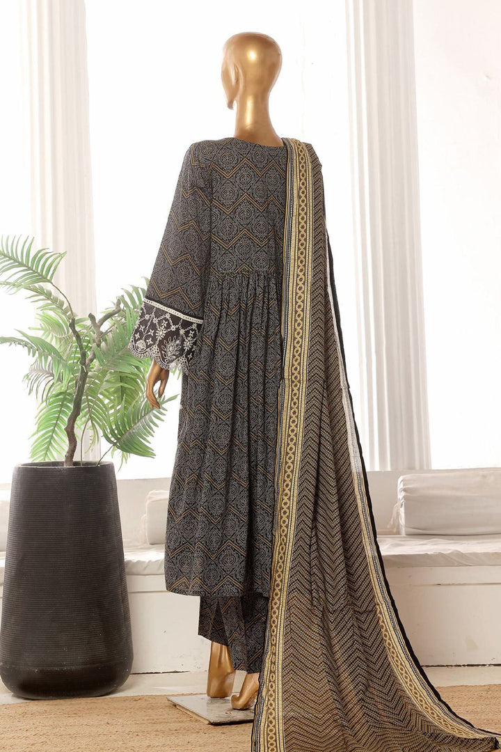 Bin Saeed Stitched 3 Piece Emb Lawn Frock Vol-02 Collection-SM-1632-Black