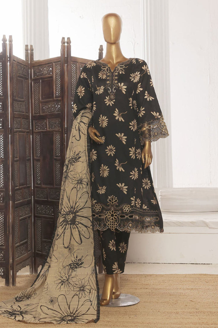 Bin Saeed Stitched 3 Piece Emb Lawn Frock Vol-03 Collection-SM-1642-Black