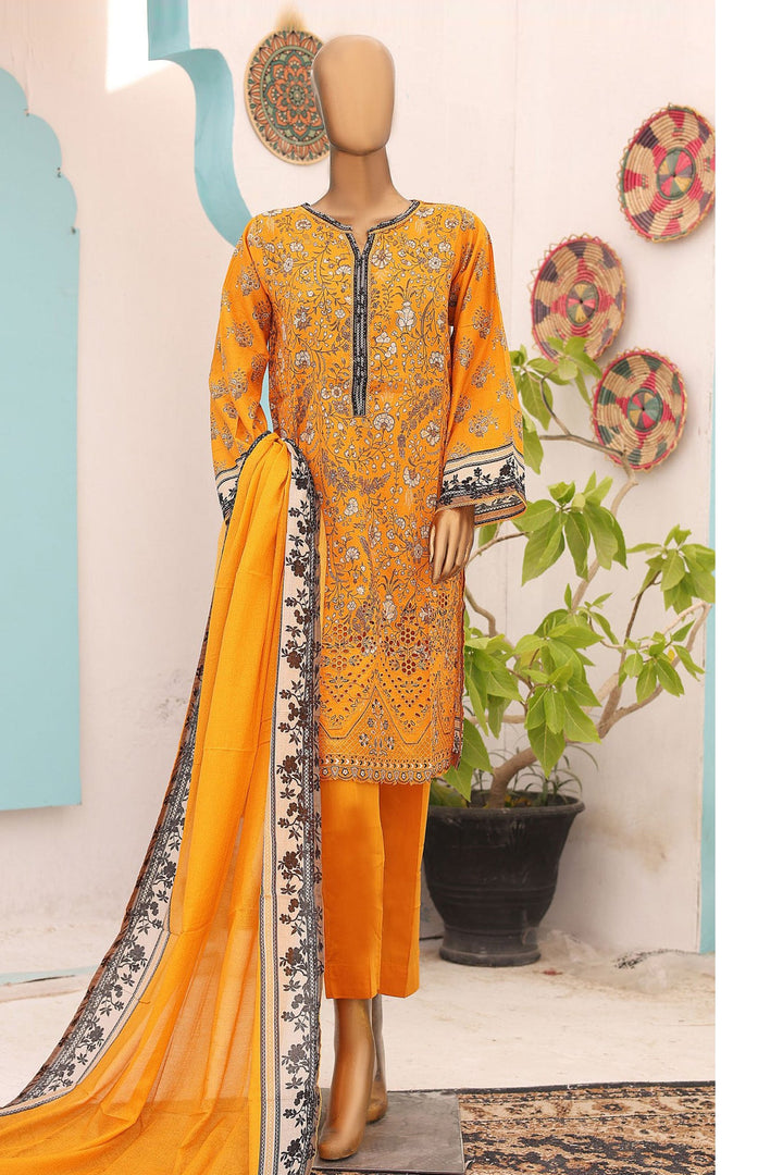Bin Saeed Stitched 3 Piece Emb Lawnkari & Cutwork Kari Collection'2024-SM-848-Mustard