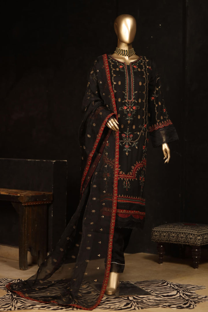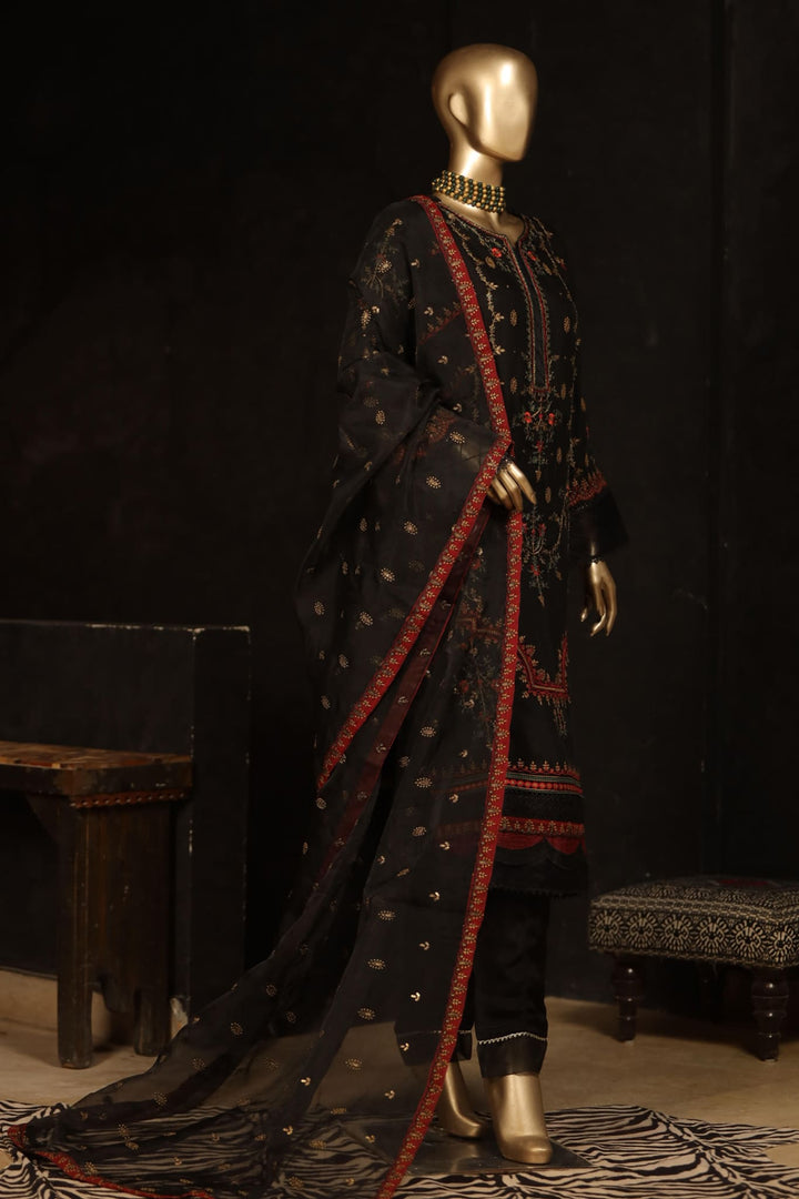 Bin Saeed Stitched 3 Piece Embroidered Chiffon Collection'2022-ZEFC-2003-Black