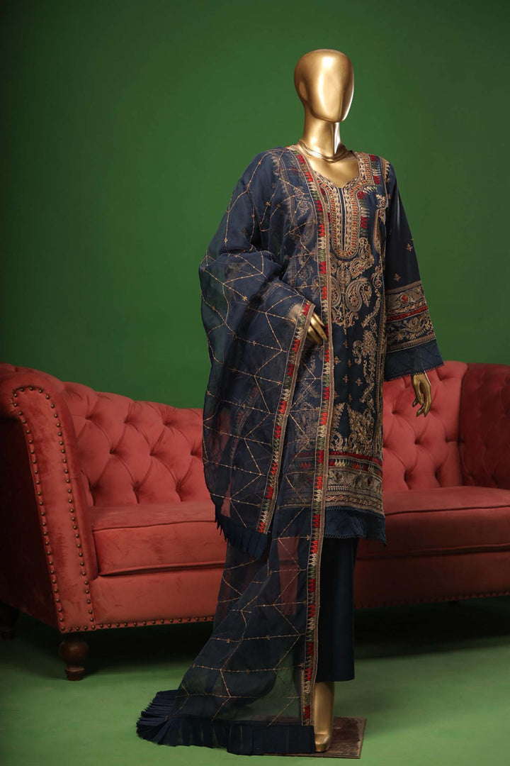 Bin Saeed Stitched 3 Piece Embroidered Cotton Kari Collection'2023-ZDS-01-A-Blue