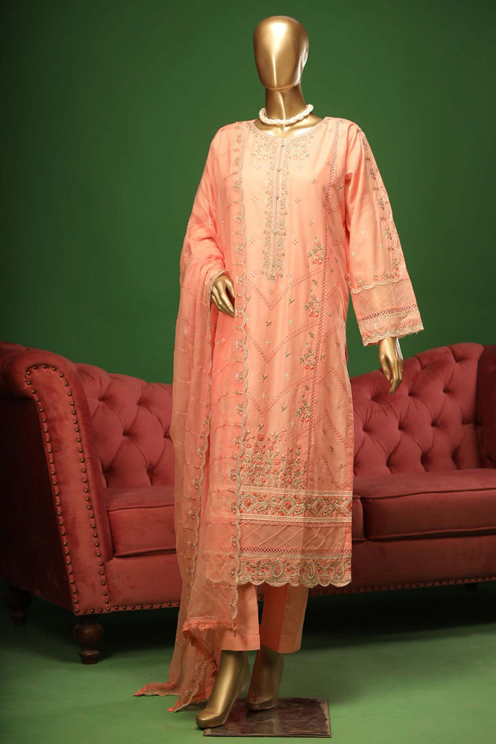 Bin Saeed Stitched 3 Piece Embroidered Cotton Kari Collection'2023-ZDS-04-B-Peach