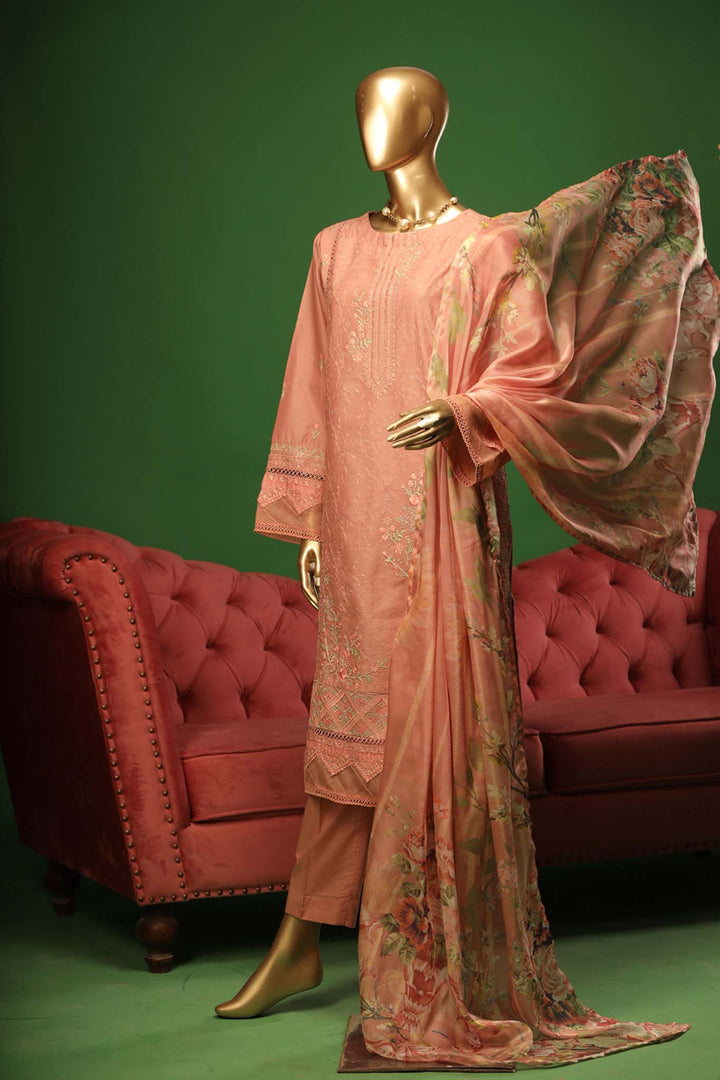 Bin Saeed Stitched 3 Piece Embroidered Cotton Kari Collection'2023-ZDS-06-B-Pink