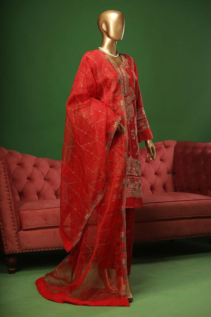 Bin Saeed Stitched 3 Piece Embroidered Cotton Kari Collection'2023-ZDS-08-A-Maroon