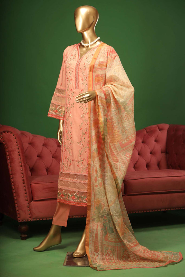 Bin Saeed Stitched 3 Piece Embroidered Cotton Kari Collection'2023-ZW-019-Pink