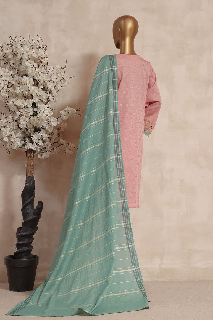 Bin Saeed Stitched 3 Piece Embroidered Jacquard Lawn Collection'2023-BNS-007-T.Pink