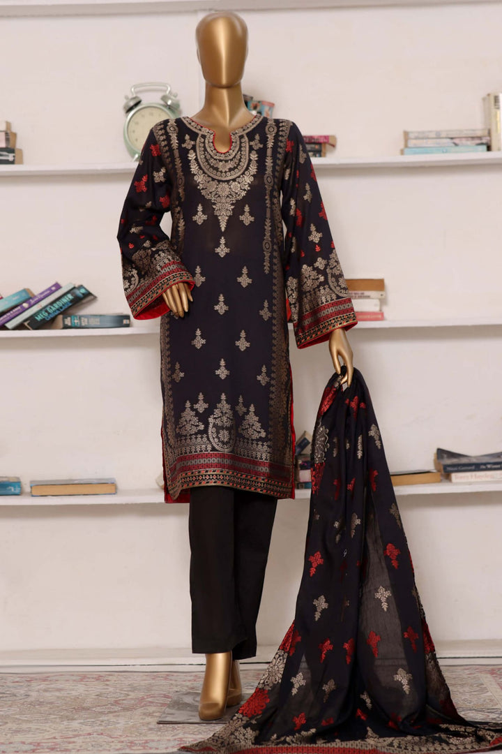 Bin Saeed Stitched 3 Piece Embroidered Jacquard Lawn Collection'2023-BNS-2316-Black