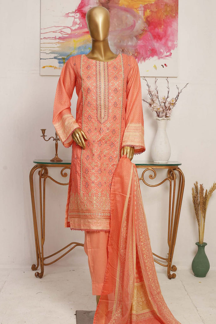 Bin Saeed Stitched 3 Piece Embroidered Lawn Collection'2023-SMLF-131-Peach