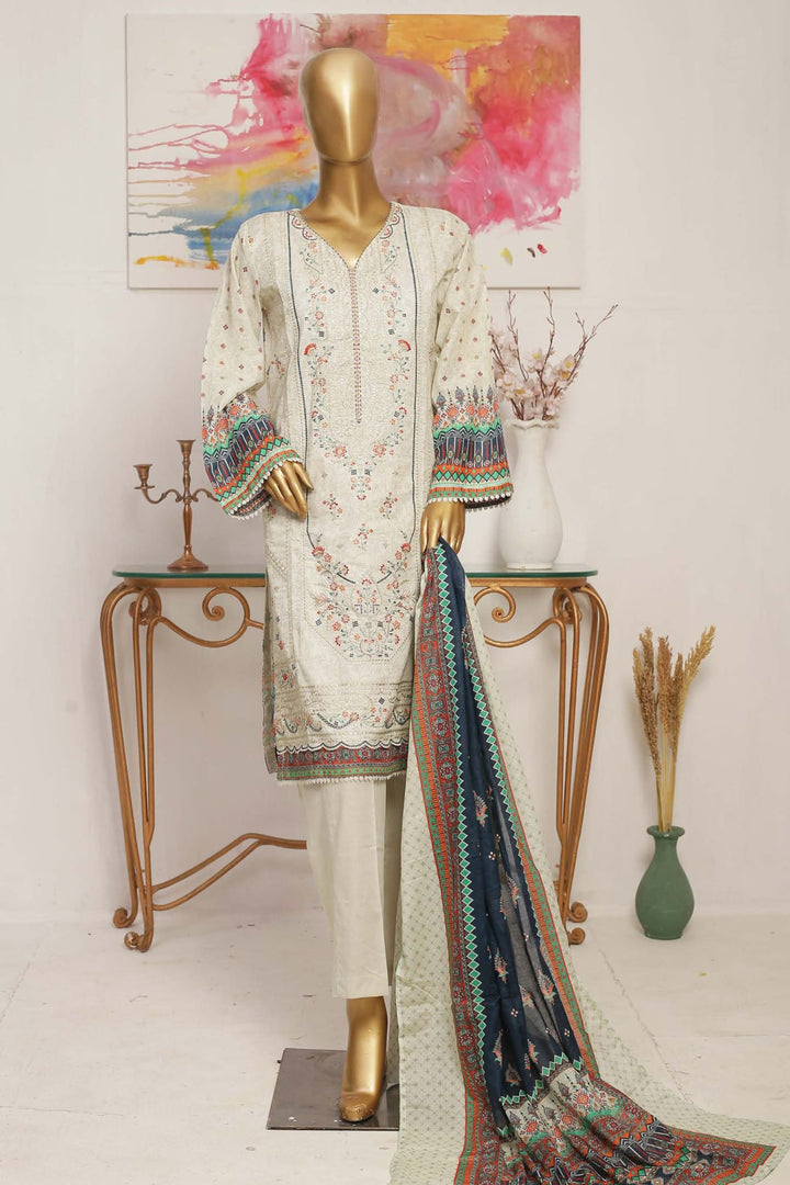 Bin Saeed Stitched 3 Piece Embroidered Lawn Collection'2023-SMLF-138-Skin