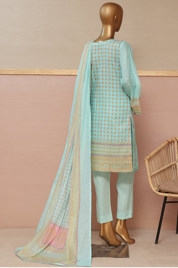 Bin Saeed Stitched 3 Piece Embroidered Summer Lawn Collection'2023-SMLF-128-Ferozi
