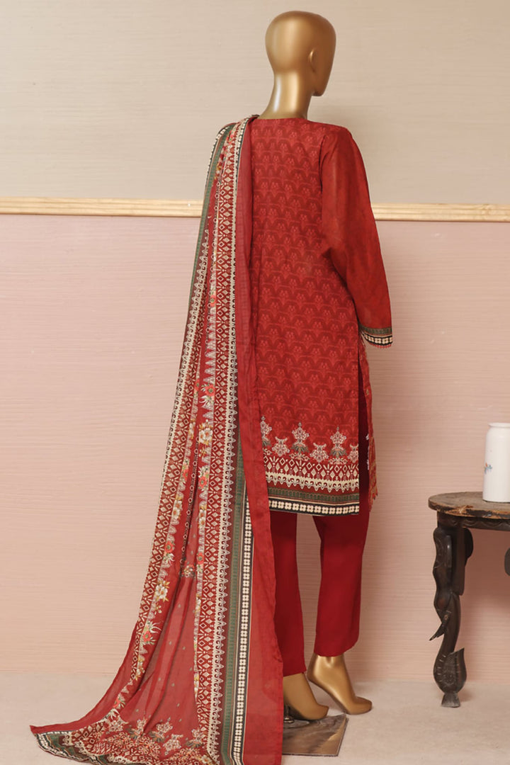 Bin Saeed Stitched 3 Piece Embroidered Summer Lawn Collection'2023-SMLF-135-Maroon