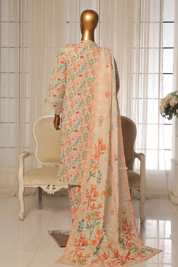 - Stitched 3 Piece Chikankari Embroidered Lawn Shirt with Chiffon Dupatta Suit