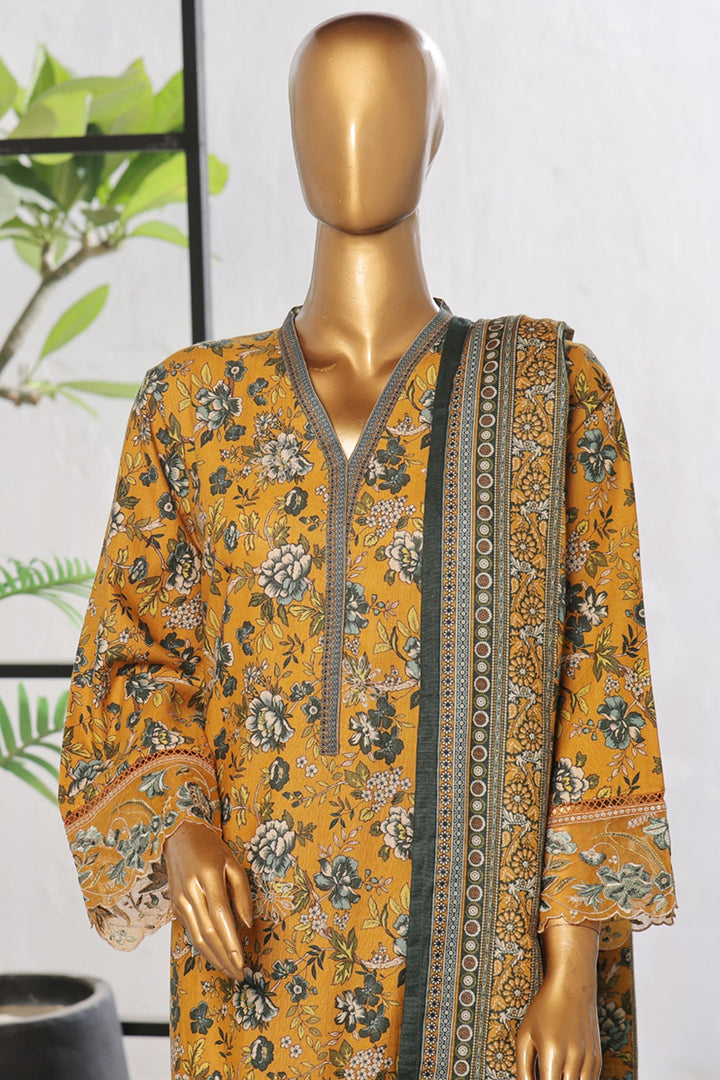 Bin Saeed Stitched 3 Piece Excessive Chikankari Khaddar Vol-03 Collection'2024-WK-1240-Yellow