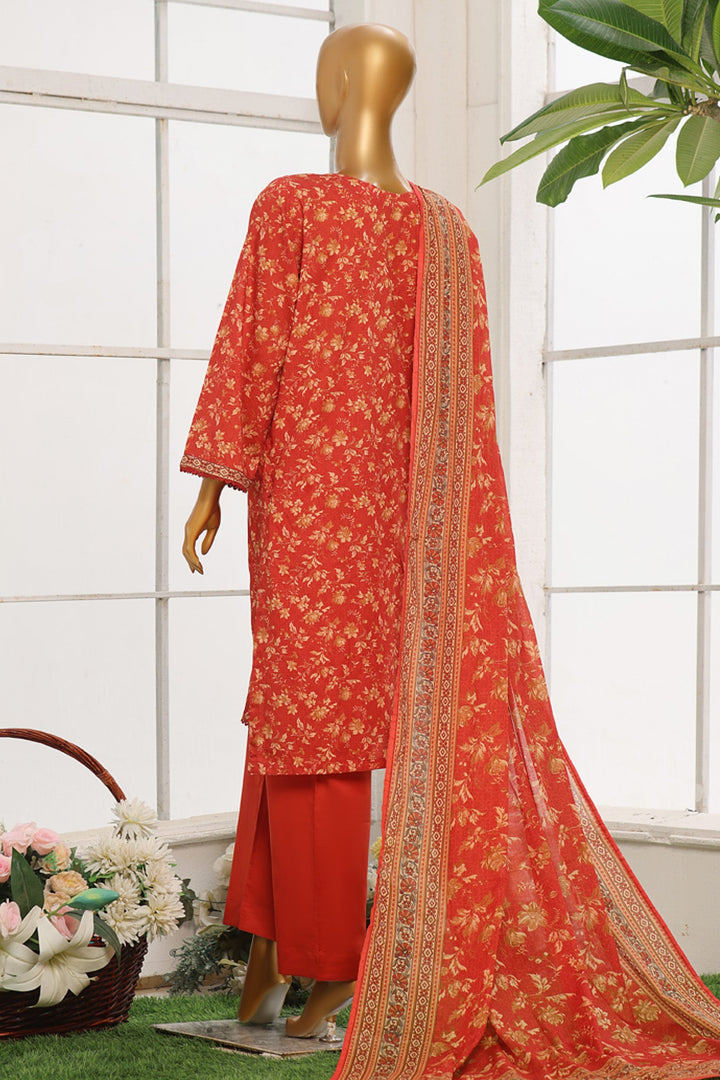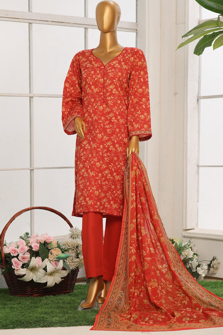 Bin Saeed Stitched 3 Piece Exclusive Cotton Vol-02 Collection'2024-WC-1068-Red