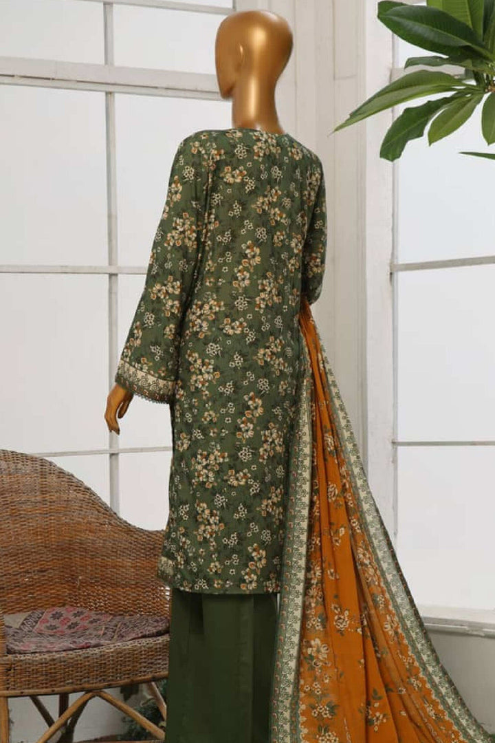 Bin Saeed Stitched 3 Piece Exclusive Cotton Vol-02 Collection'2024-WC-1069-Mehndi