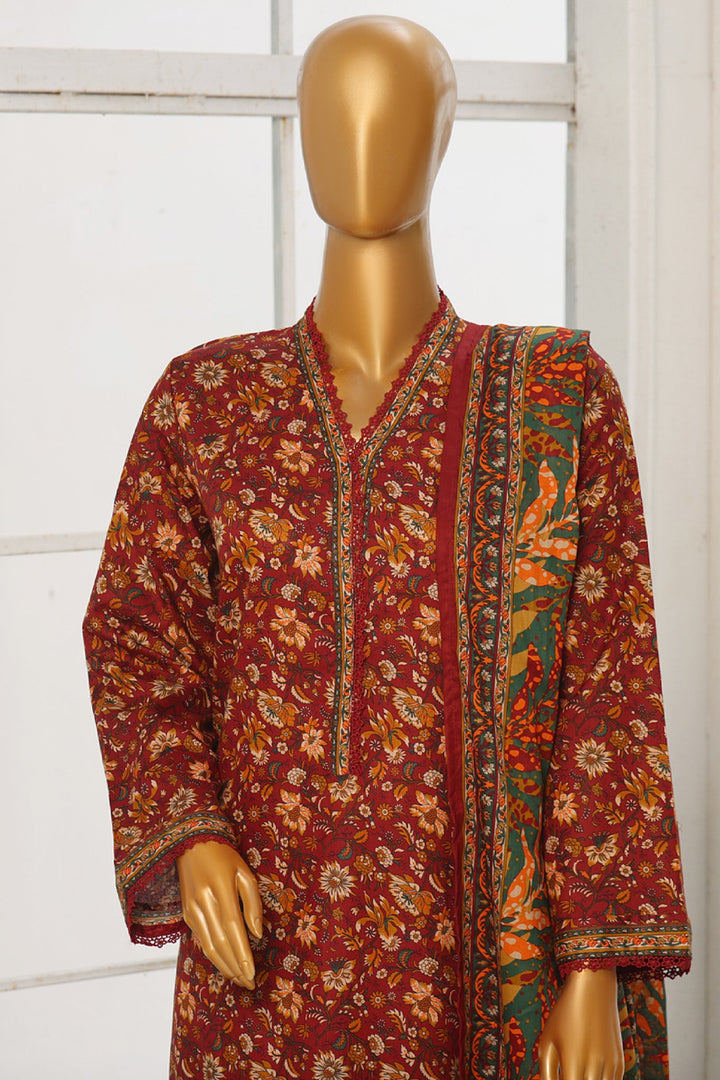 Bin Saeed Stitched 3 Piece Exclusive Cotton Vol-02 Collection'2024-WC-1072-Rust