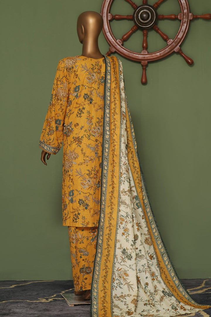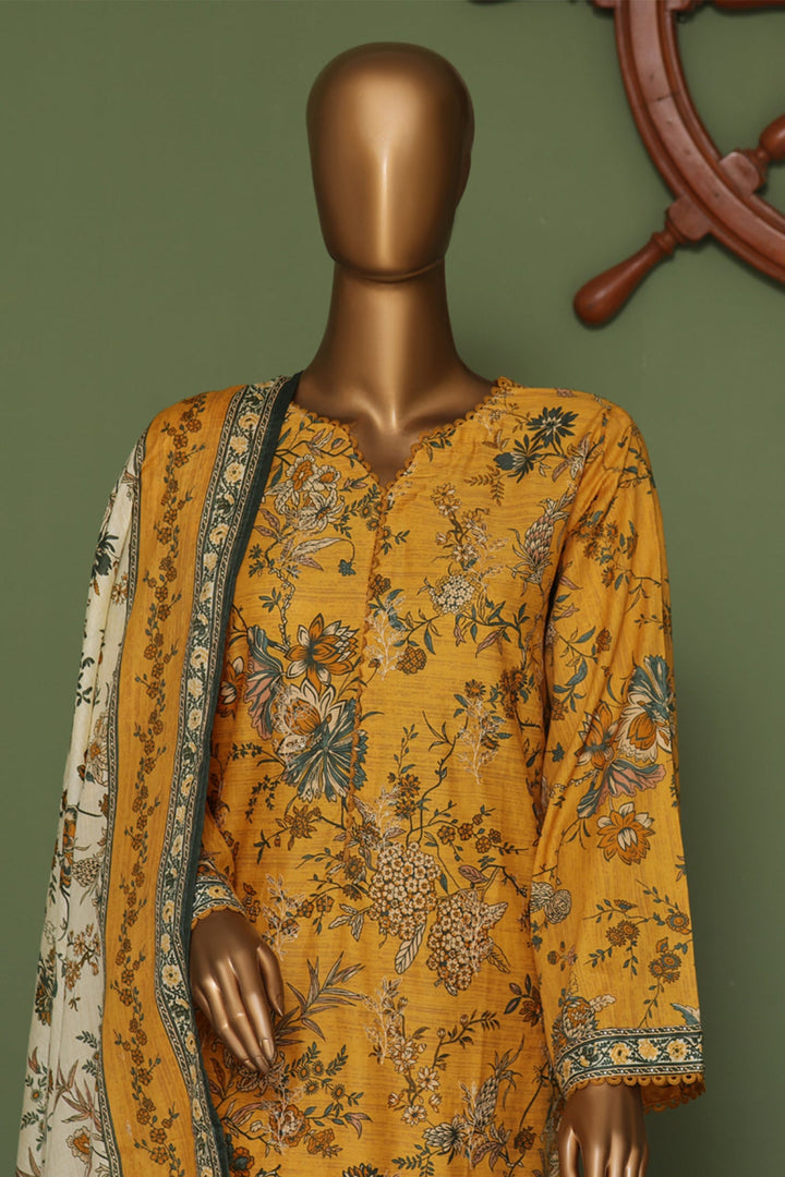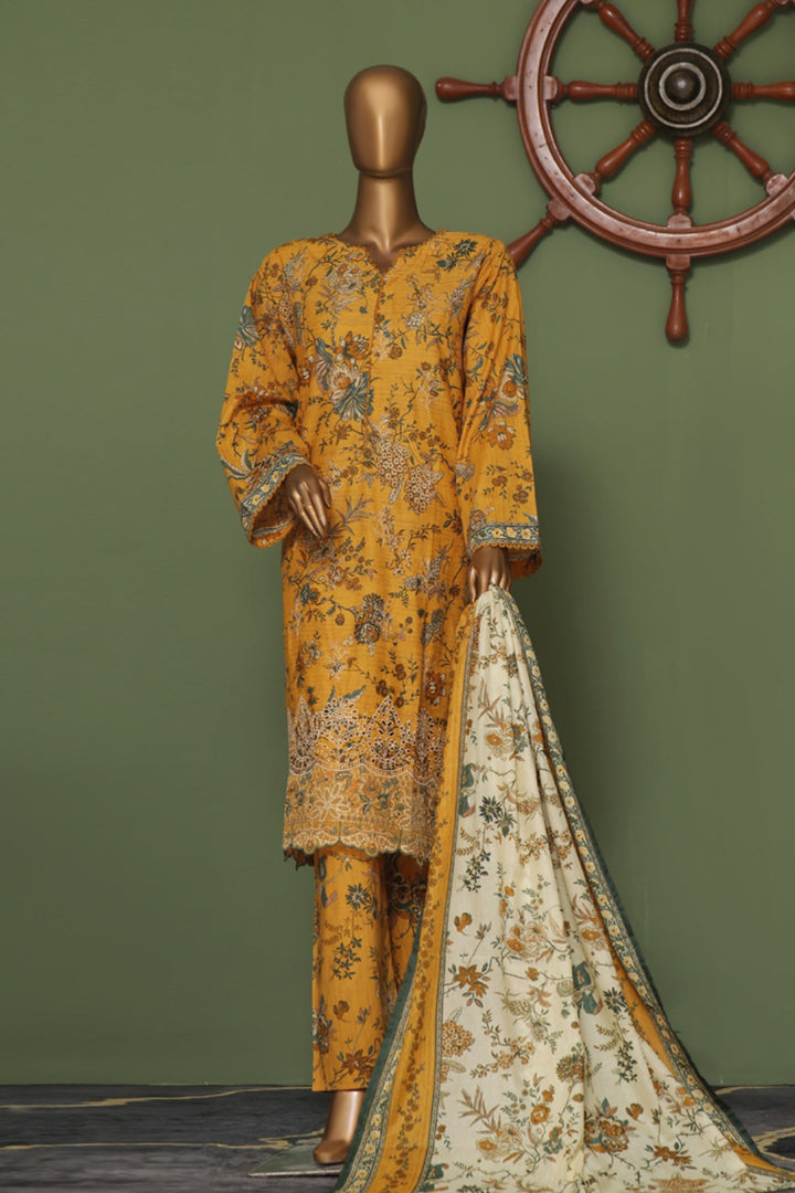 Bin Saeed Stitched 3 Piece Exclusive Emb Cotton Vol-02 Collection'2024-WC-1259-Yellow