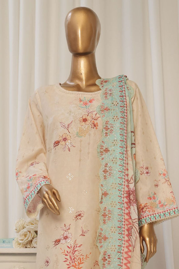 Bin Saeed Stitched 3 Piece Exclusive Emb Lawn Collection'2025-SM-1816-Skin