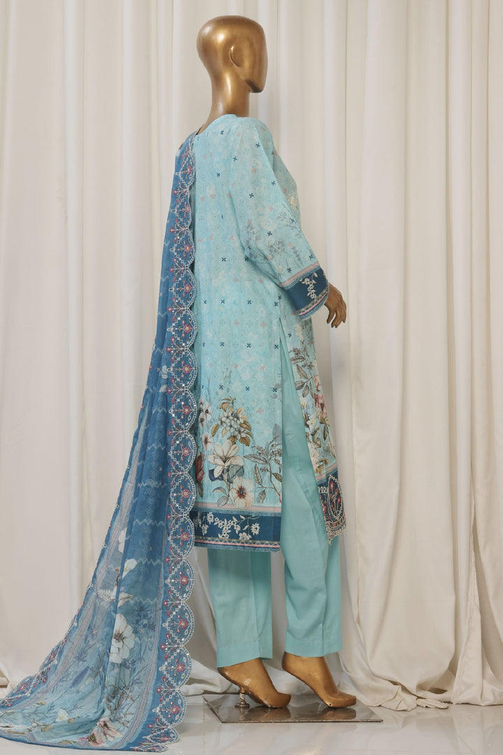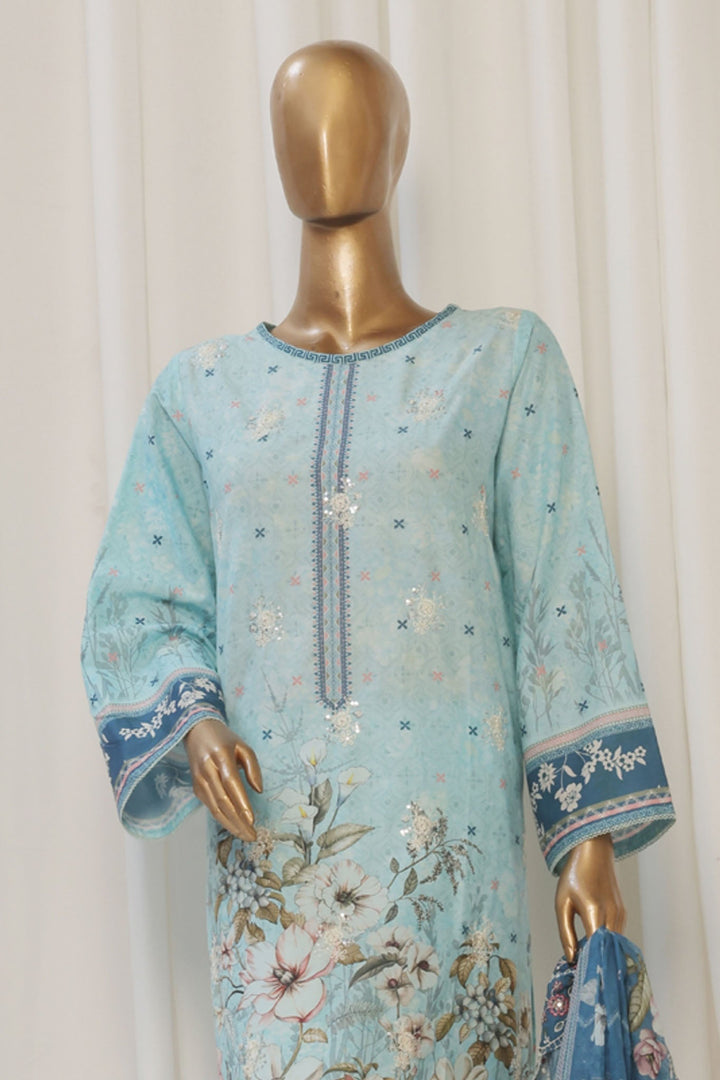 Bin Saeed Stitched 3 Piece Exclusive Emb Lawn Collection'2025-SM-1818-Ferozi
