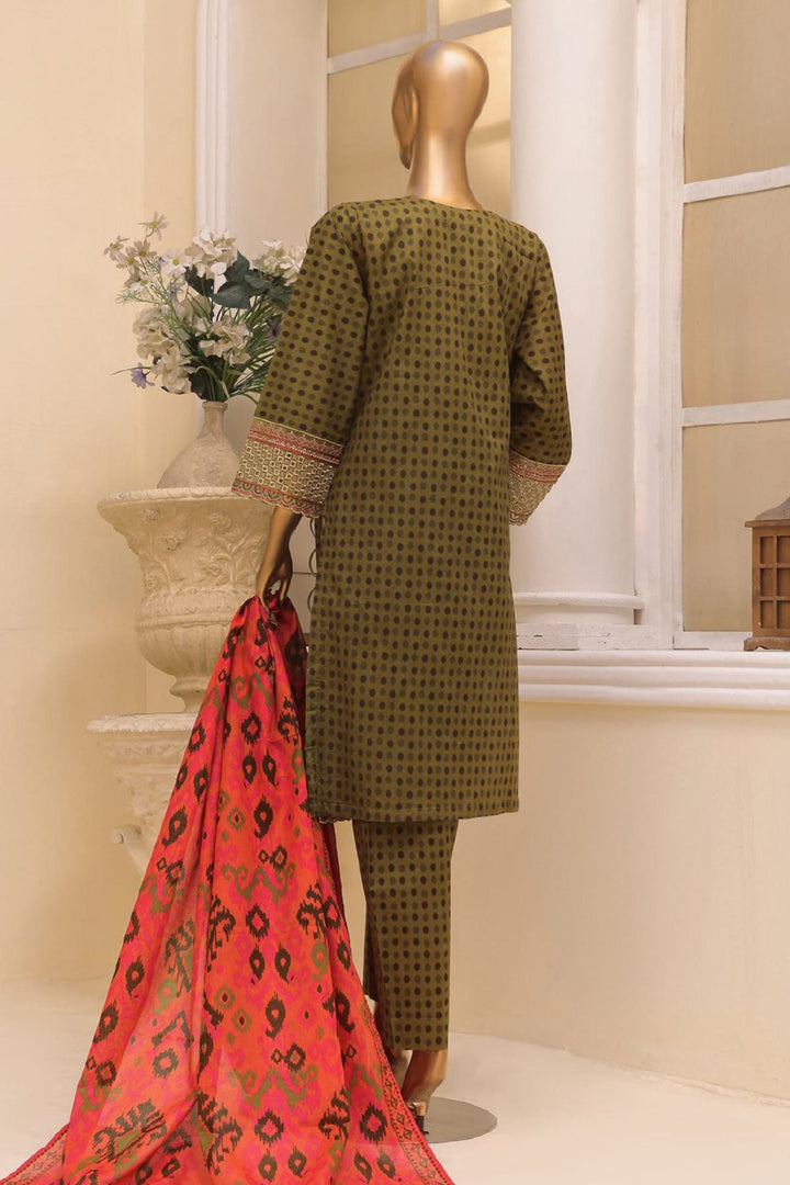 Bin Saeed Stitched 3 Piece Exclusive Emb Lawn Vol-03 Collection-SM-1689-Mehndi