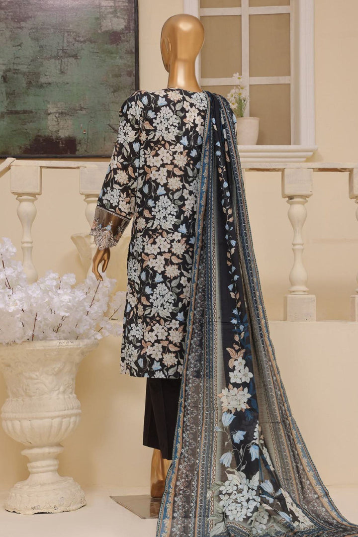 Bin Saeed Stitched 3 Piece Exclusive Emb Lawn Vol-03 Collection-SM-1691-Black