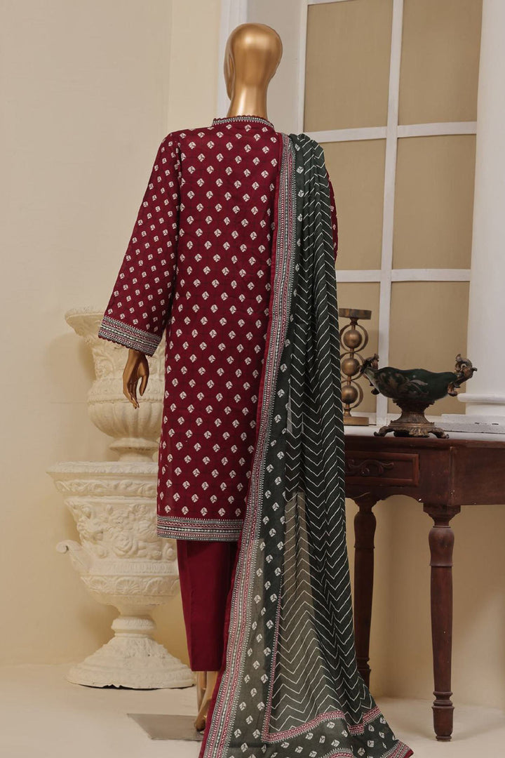 Bin Saeed Stitched 3 Piece Exclusive Emb Lawn Vol-03 Collection-SM-1693-Red