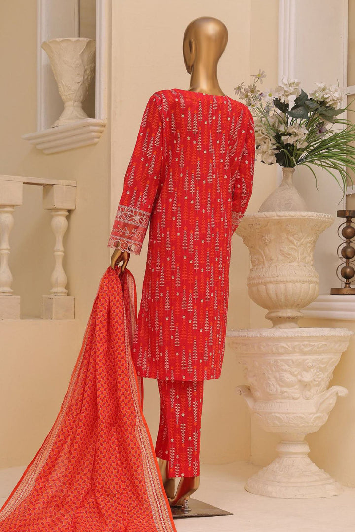 Bin Saeed Stitched 3 Piece Exclusive Emb Lawn Vol-03 Collection-SM-1700-Red