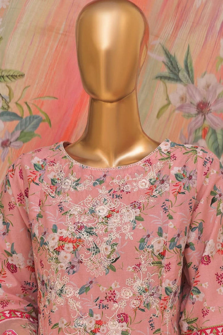 Bin Saeed Stitched 3 Piece Exclusive Emb Lawn Vol-05 Collection-SM-1944-Pink