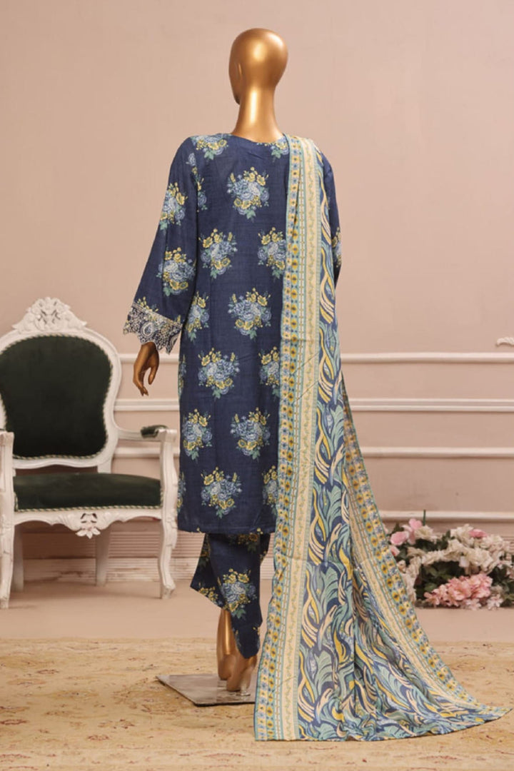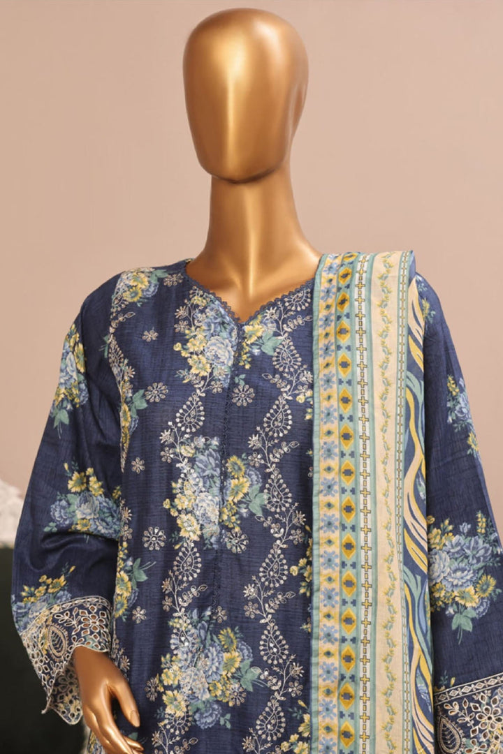 Bin Saeed Stitched 3 Piece Exclusive Emb Lawn Vol-05 Collection-WC-1947-Blue
