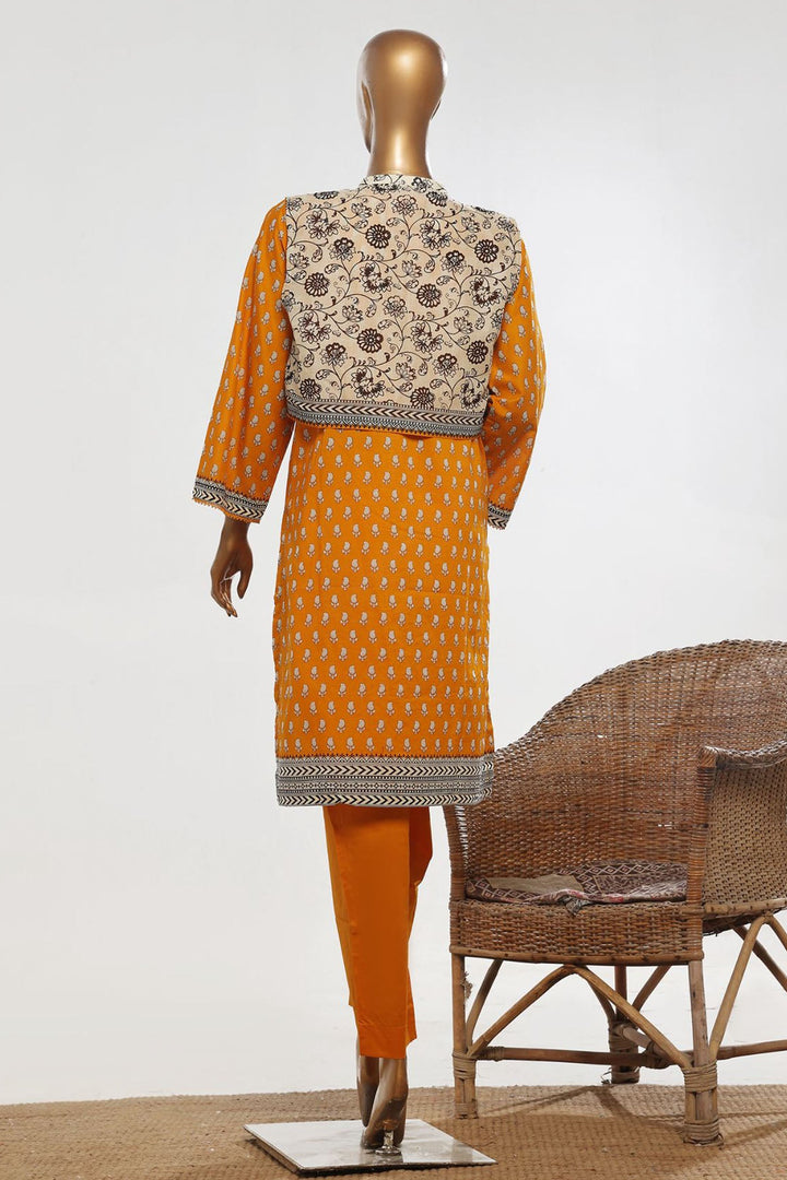 Bin Saeed Stitched 3 Piece Exclusive Emb Lawn With Coat Collection-SM-1653-Yellow
