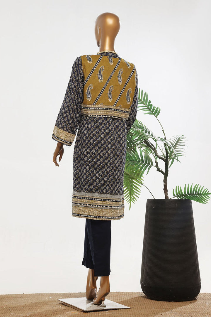 Bin Saeed Stitched 3 Piece Exclusive Emb Lawn With Coat Collection-SM-1654-Blue