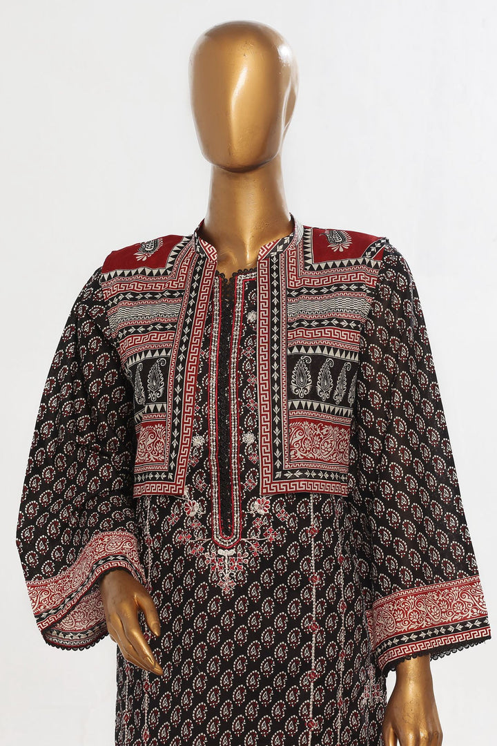 Bin Saeed Stitched 3 Piece Exclusive Emb Lawn With Coat Collection-SM-1655-Black