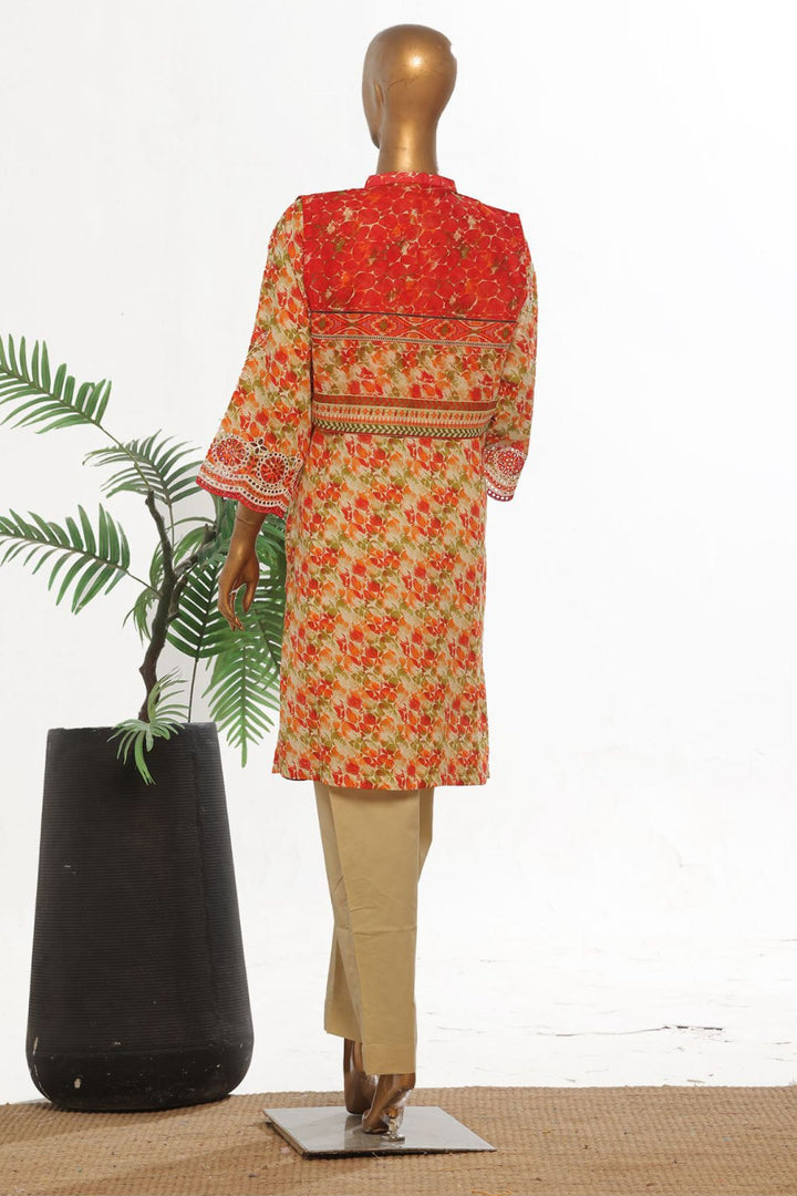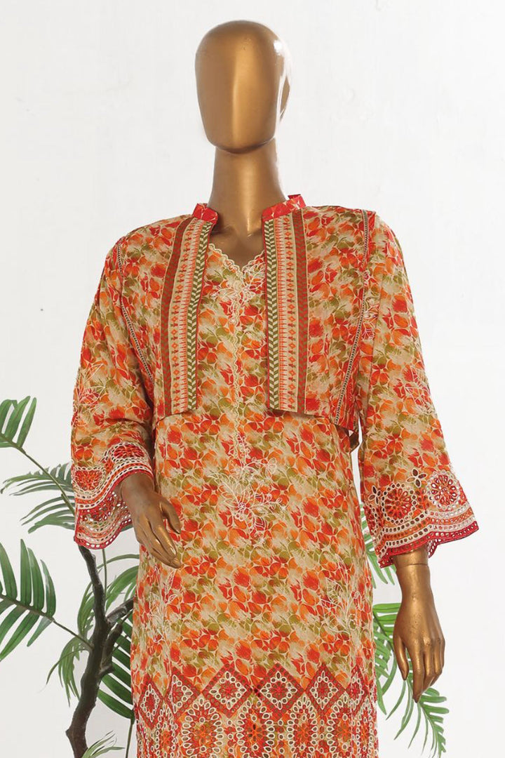 Bin Saeed Stitched 3 Piece Exclusive Emb Lawn With Coat Vol-02 Collection-SM-1735-Orange