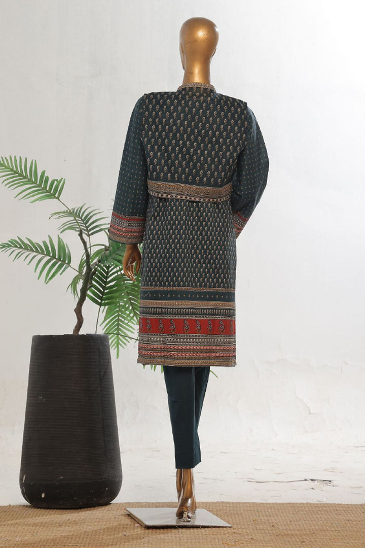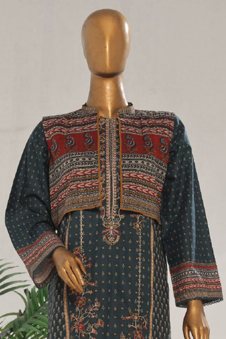 Bin Saeed Stitched 3 Piece Exclusive Emb Lawn With Coat Vol-02 Collection-WC-1736-Blue