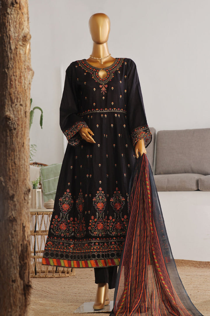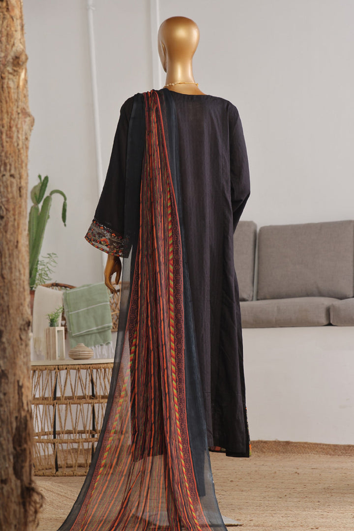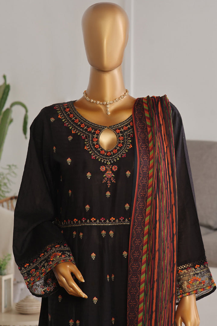 Bin Saeed Stitched 3 Piece Festive Emb Jacquard Frocks Collection'2024-BNS-1040-Black