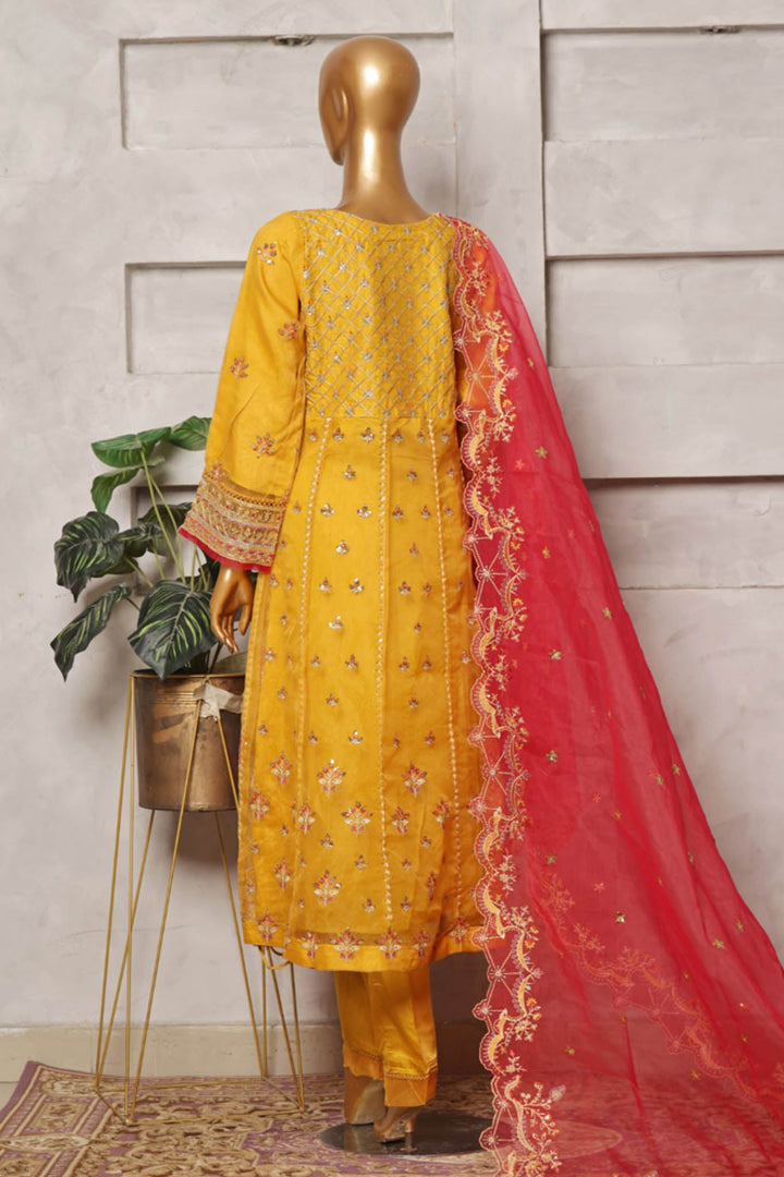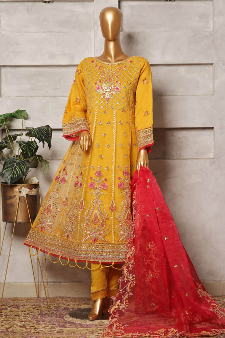 Bin Saeed Stitched 3 Piece Festive Formals Emb Organza Collection'2024-OWS-347-Yellow