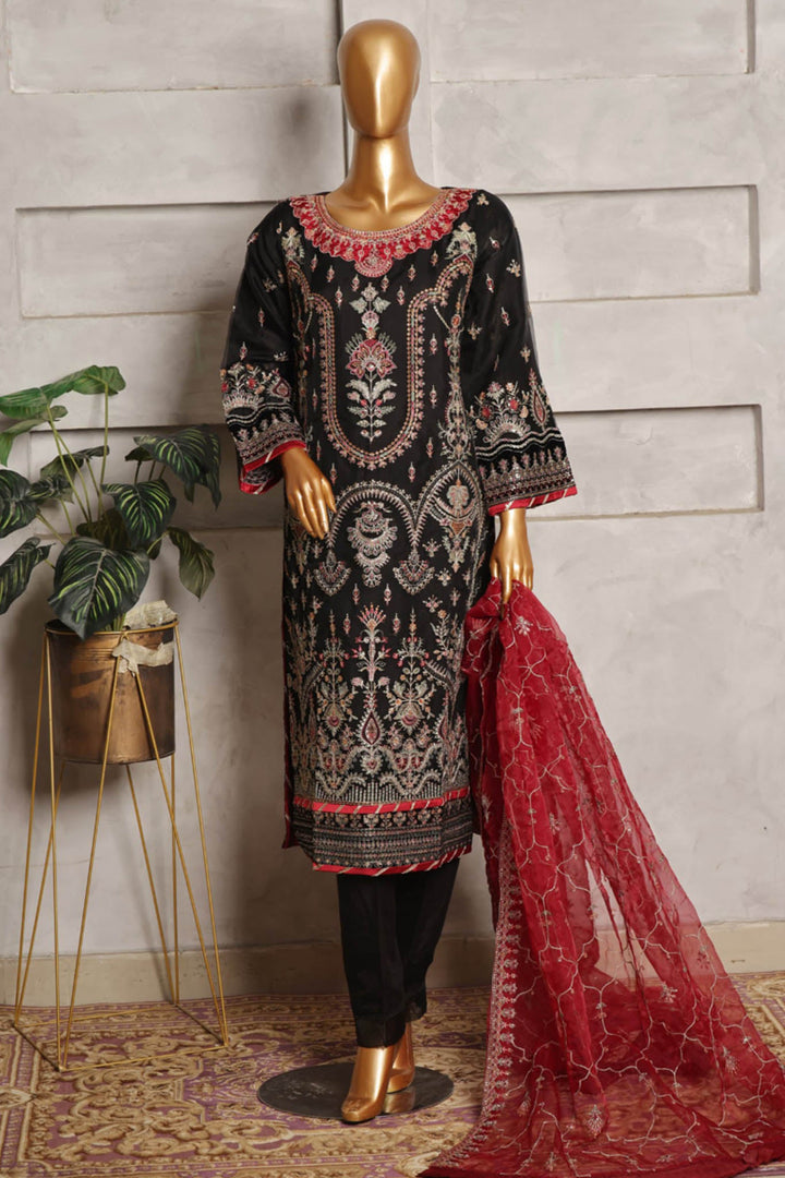 Bin Saeed Stitched 3 Piece Festive Formals Emb Organza Collection'2024-STS-348-Black