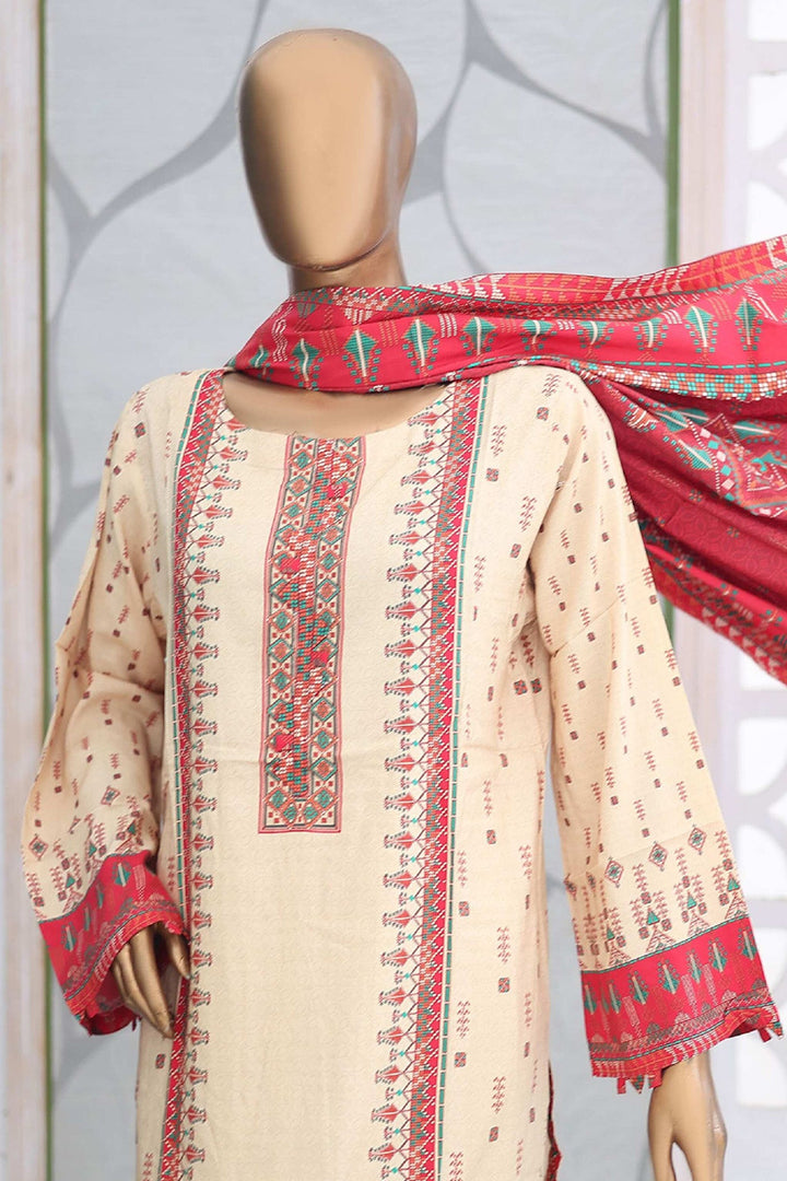 Bin Saeed Stitched 3 Piece Linen Winter Collection'2024-LIN-997-Cream