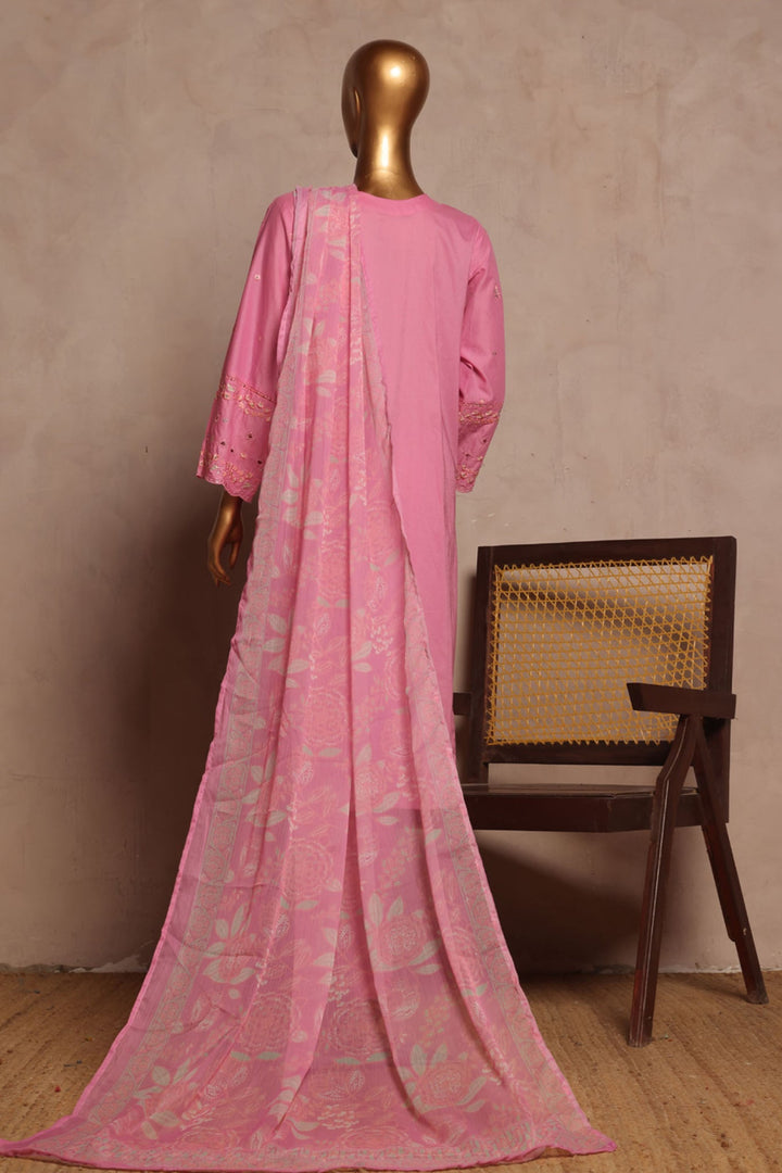 Bin Saeed Stitched 3 Piece Luxe Plain Cotton With Chiffon Dupatta Collection'2025-SMPC-1953-Pink