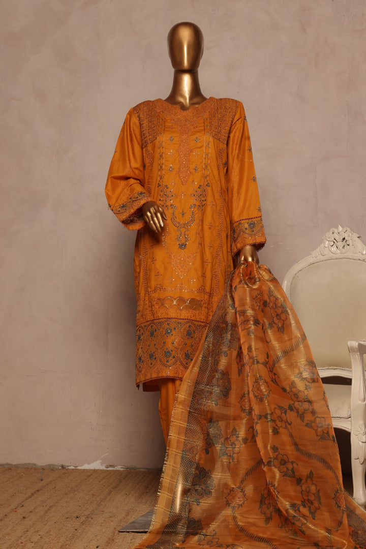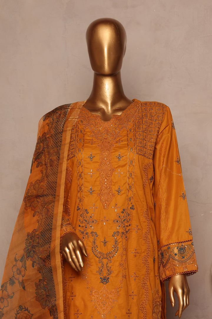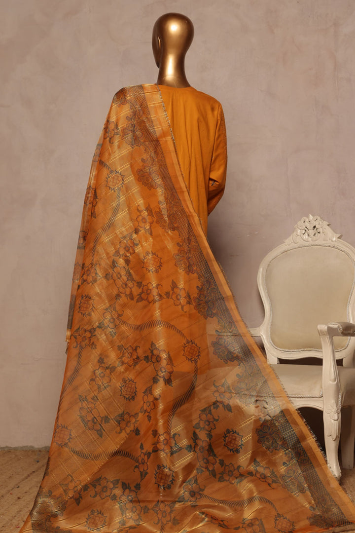 Bin Saeed Stitched 3 Piece Luxe Plain Cotton With Chiffon Dupatta Collection'2025-SMPC-1955-Mustard