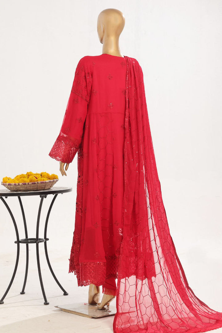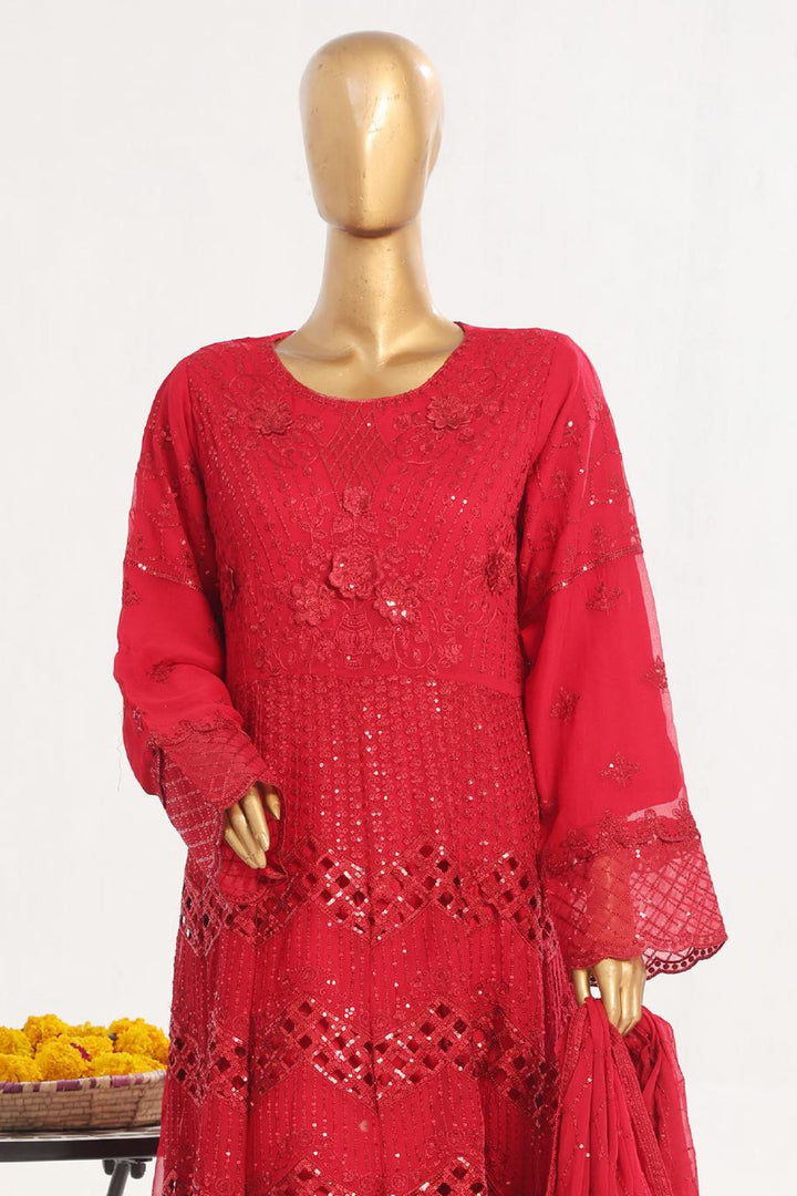 Bin Saeed Stitched 3 Piece Luxury Emb Chiffon Frock Vol-03 Collection-OMSC-1677-Maroon