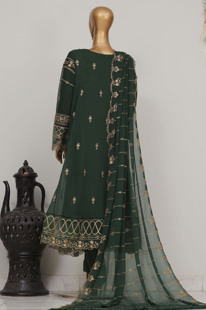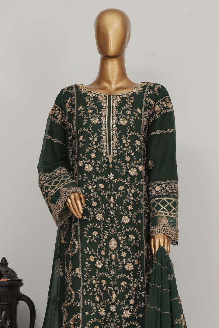 Bin Saeed Stitched 3 Piece Luxury Emb Chiffon Frock Vol-03 Collection-OMSC-1679-Green