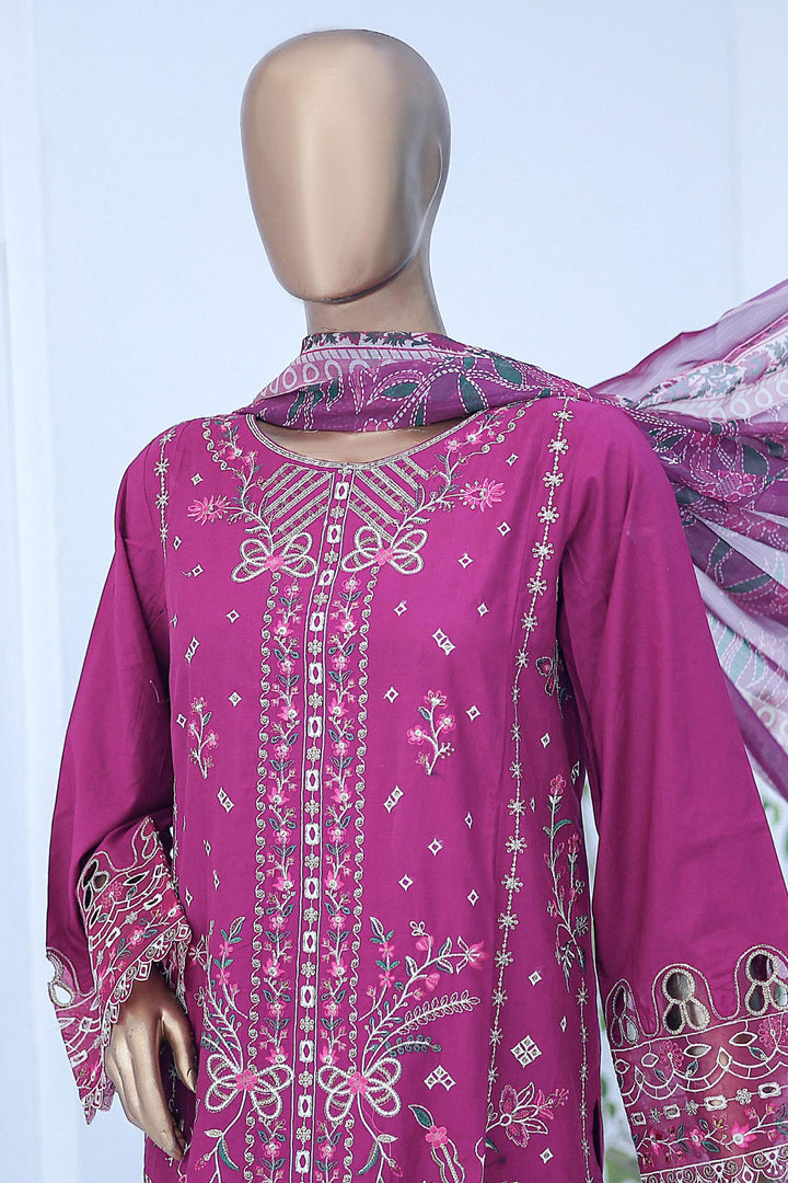 Bin Saeed Stitched 3 Piece Luxury Emb Cotton Collection'2024-LF-952-Magenta
