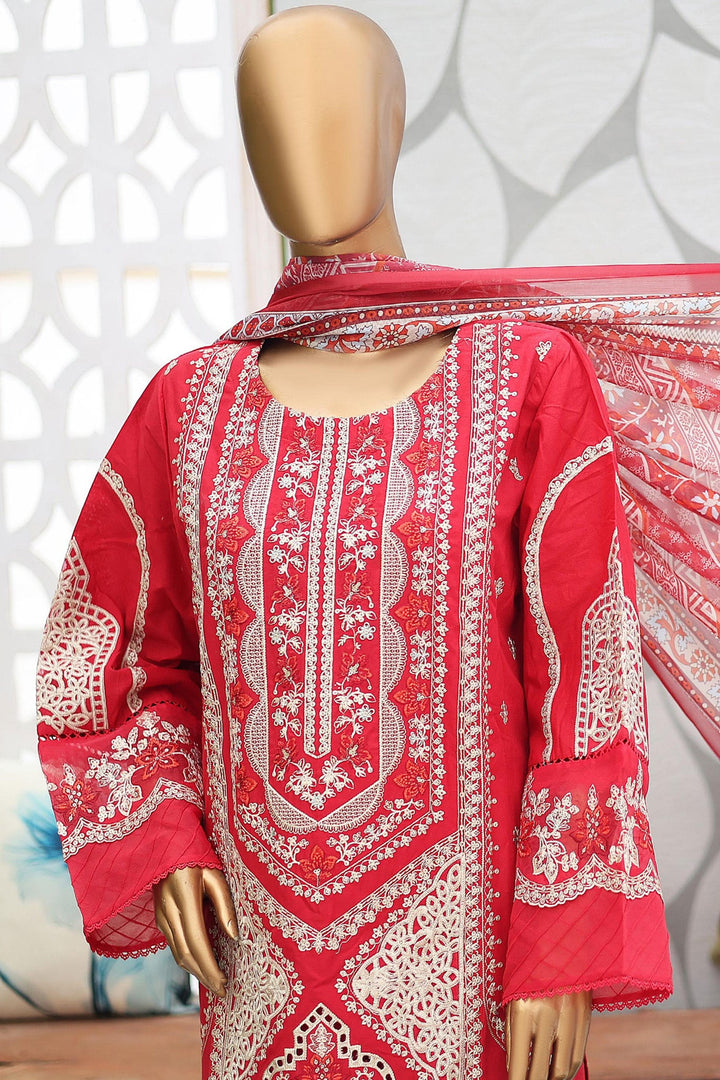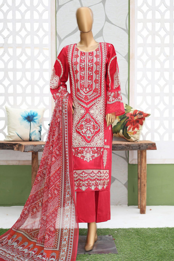 Bin Saeed Stitched 3 Piece Luxury Emb Cotton Collection'2024-LF-956-Red
