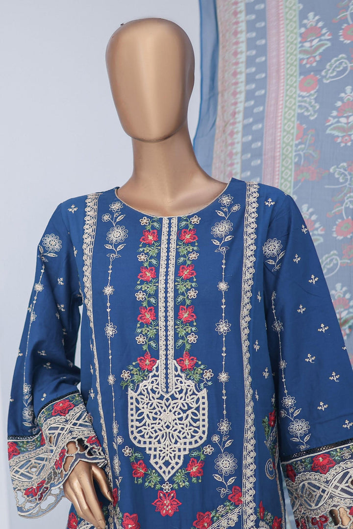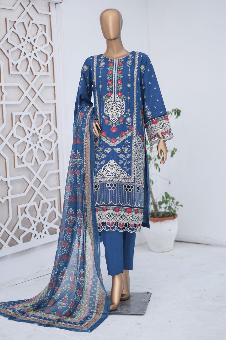 Bin Saeed Stitched 3 Piece Luxury Emb Cotton Collection'2024-LF-957-Navy Blue