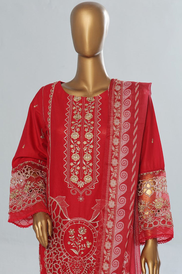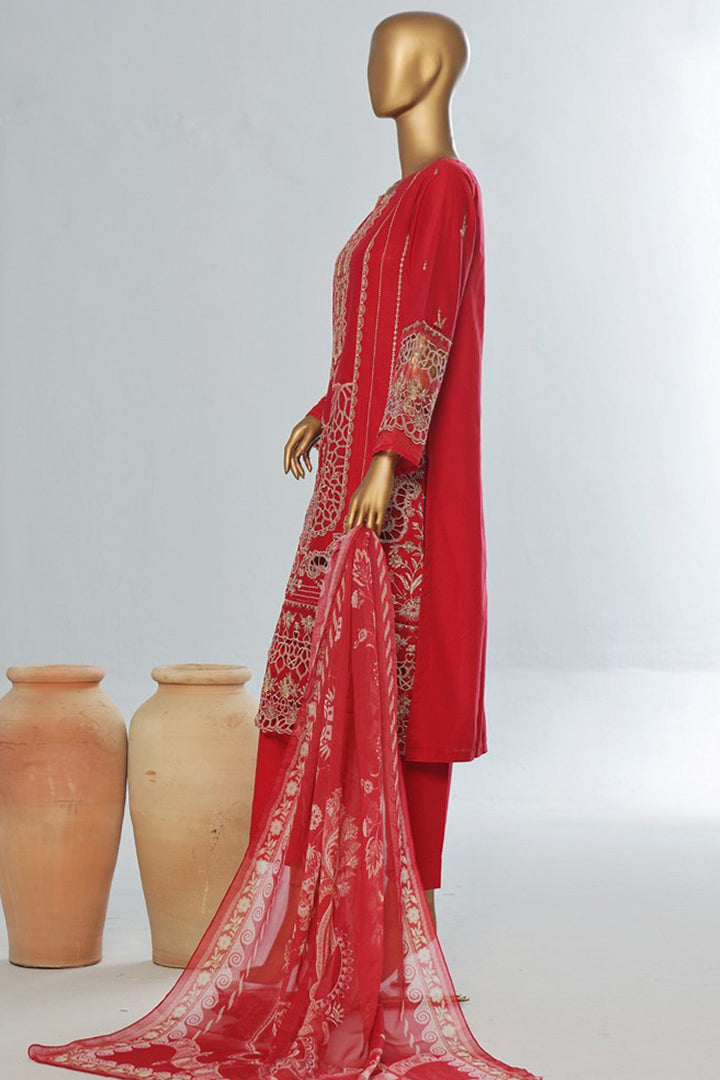 Bin Saeed Stitched 3 Piece Luxury Emb Cotton Vol-04 Collection'2024-LF-1154-Red
