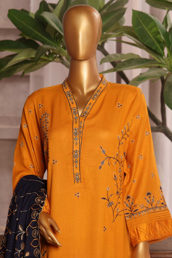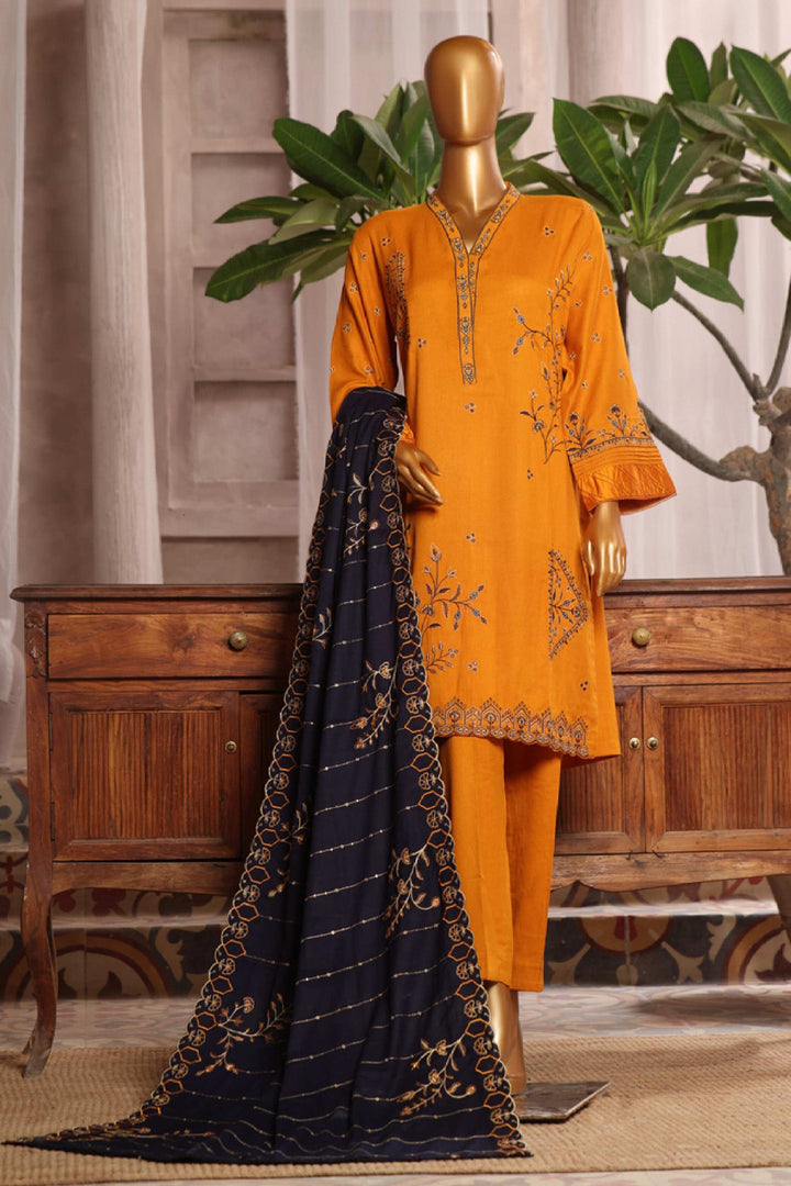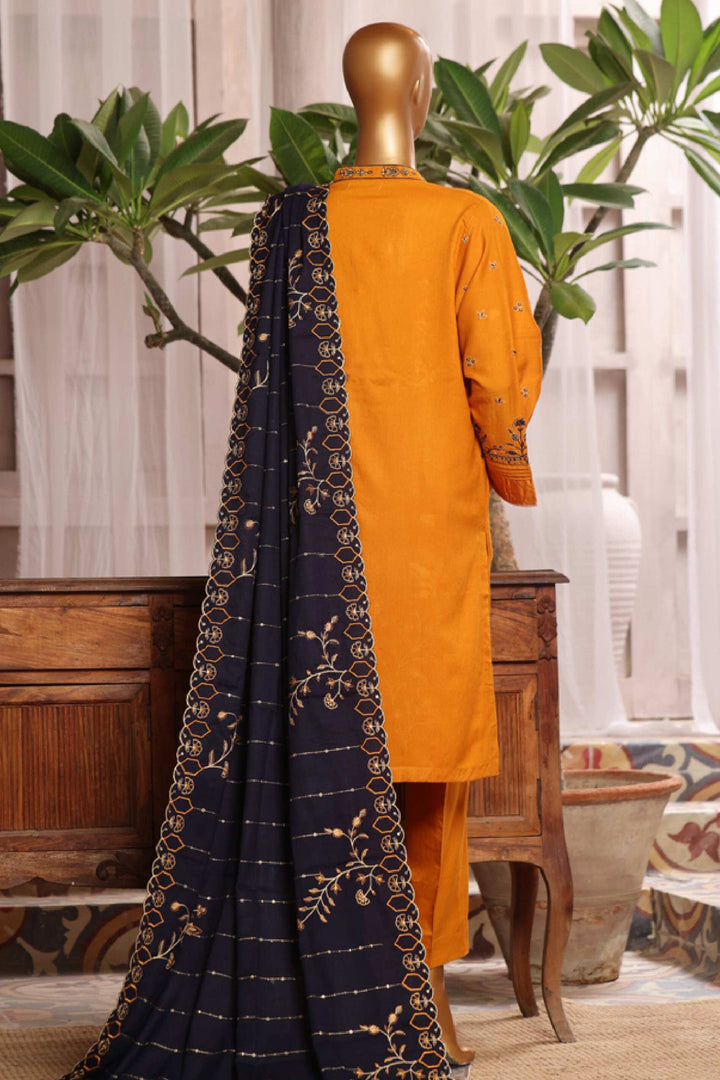 Bin Saeed Stitched 3 Piece Luxury Emb Karandi Vol-02 Collection'2024-SFB-1048-Mustard
