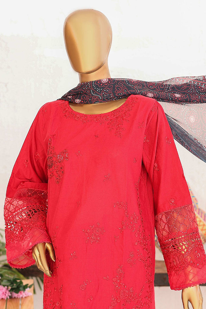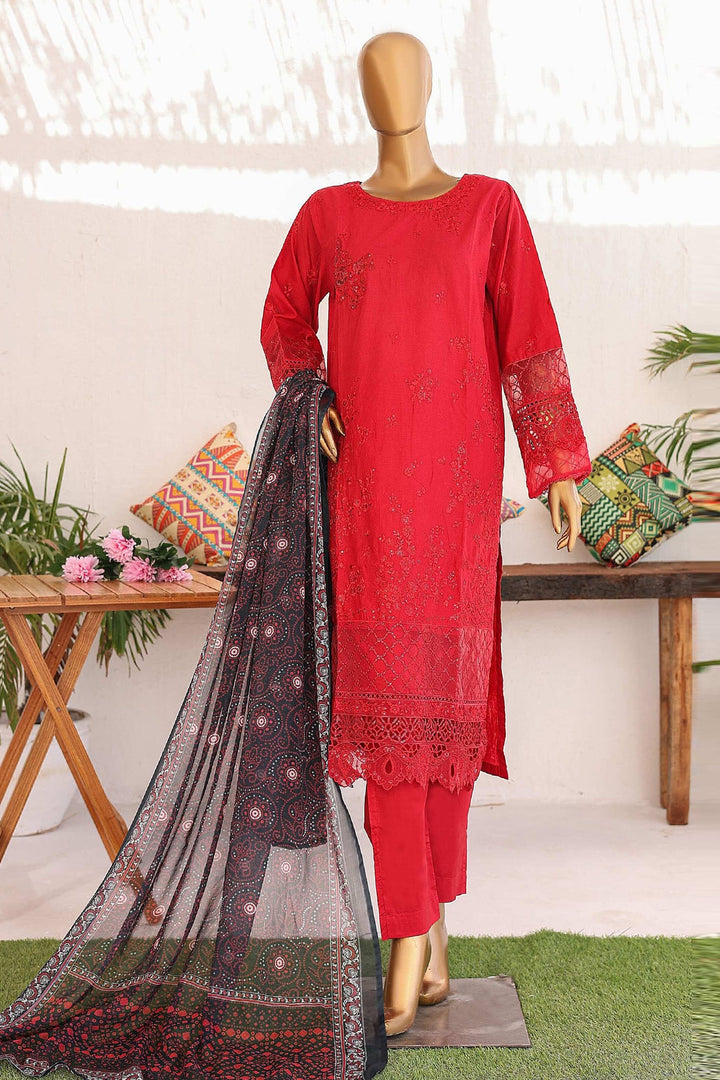 Bin Saeed Stitched 3 Piece Luxury Emb Lawn Vol-02 Collection'2024-LF-972-Red