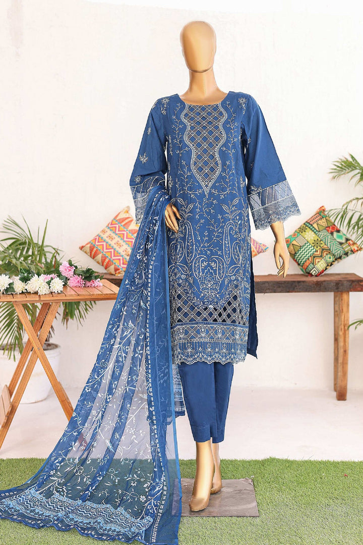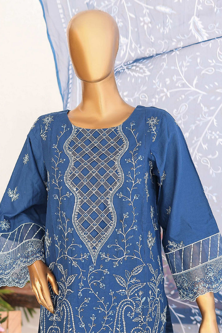 Bin Saeed Stitched 3 Piece Luxury Emb Lawn Vol-02 Collection'2024-LF-973-Blue