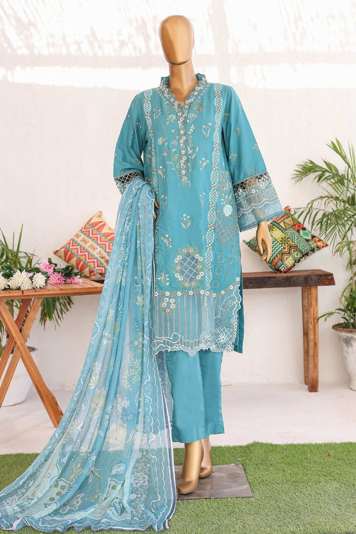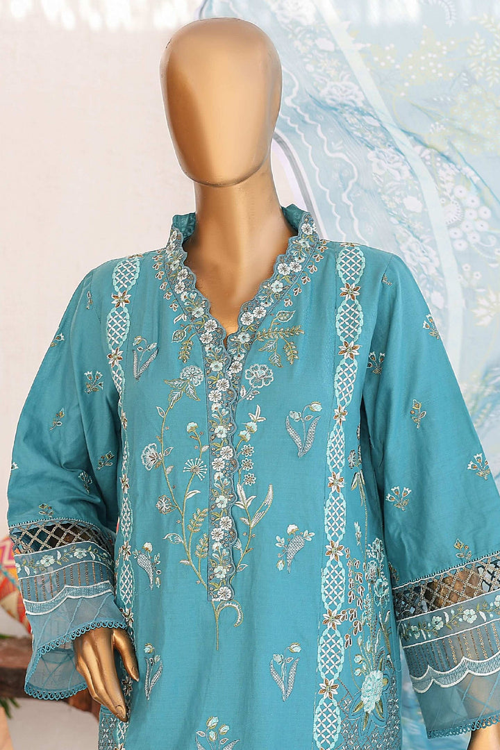 Bin Saeed Stitched 3 Piece Luxury Emb Lawn Vol-02 Collection'2024-LF-975-Ferozi
